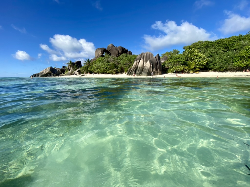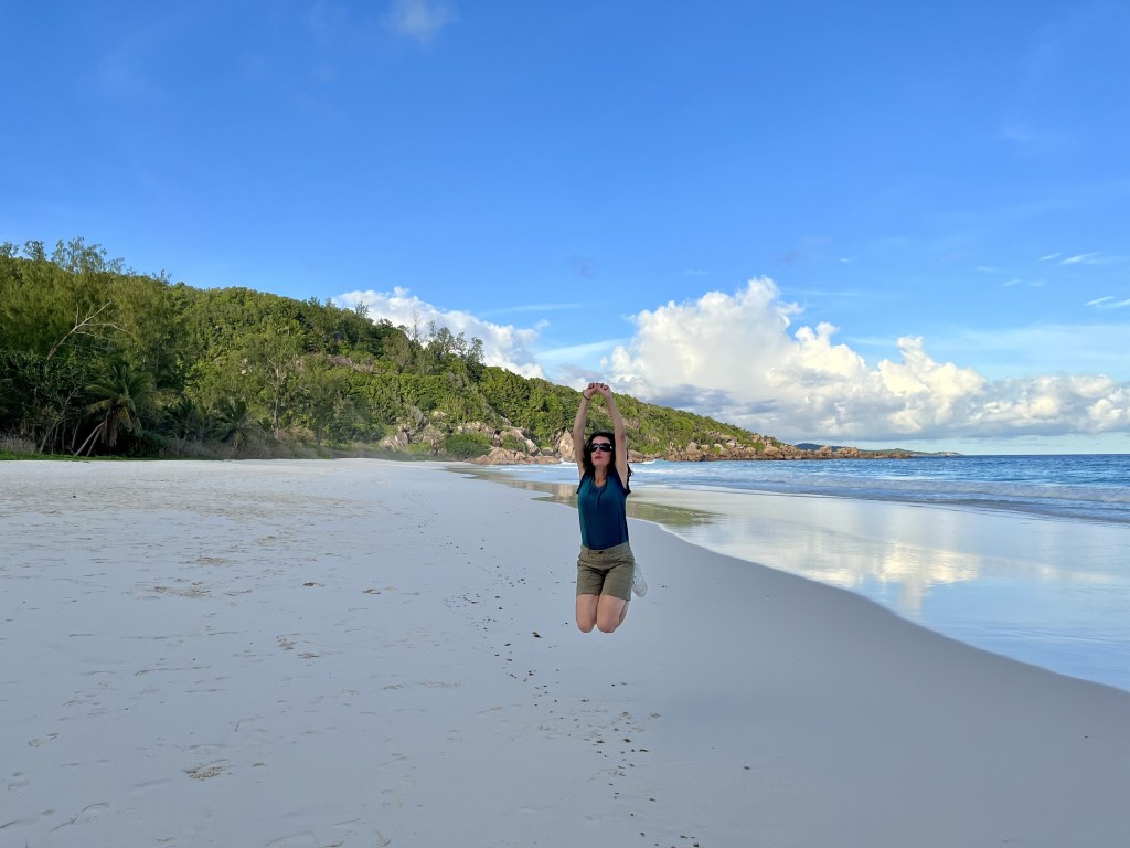 The next day, we head to Anse Source d’Argent, famous for being one of the most photographed beaches on the planet. As we approach, we are greeted by the sight of towering granite boulders, sculpted by nature and time into smooth and beautiful shapes dotted along a stretch of powdery white sand, set against emerald-green vegetation. The cotton-like sand merges seamlessly into sparkling crystal clear waters, with varying shades of blue and turquoise, inviting us for a swim to cool down from the heat of the day.