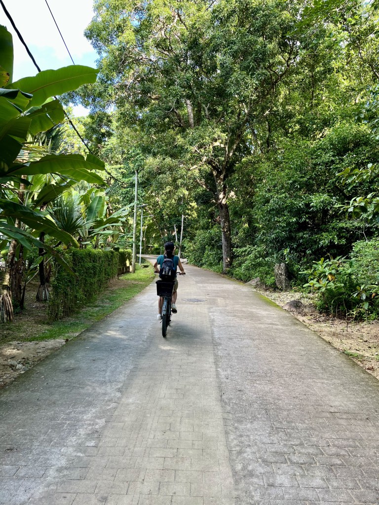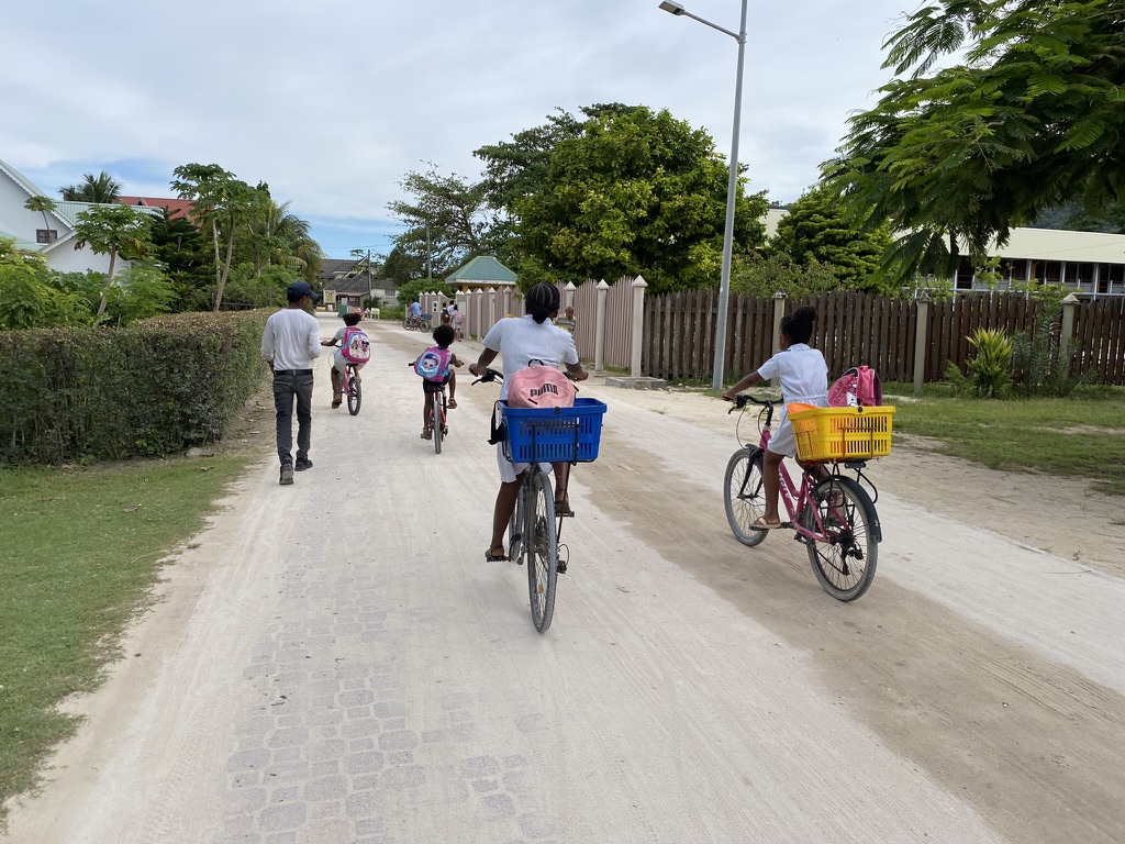 As I pedal down the main road, I watch locals heading to work and kids whizz by on their bicycles with their school bags neatly tucked into the rear baskets. Everyone seems relaxed and cheerful, as if nothing matters. Life is so simple here in la Digue – no morning rush or traffic jams.