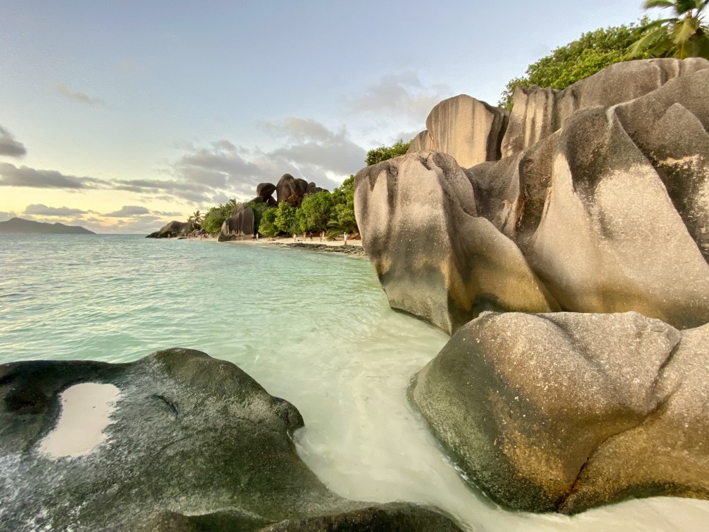 We sit under the shade of a Takamaka tree to escape the scorching midday heat, whilst enjoying fresh pineapple juices from a quaint little shack that sells drinks and snacks. It’s incredibly refreshing! Later in the afternoon, after a long swim and some snorkelling, we wander along a stretch of beautiful small beaches that form Anse Source d’Argent. The further we walk, the more beautiful the scenery gets. On the way back, we are treated to one of the most beautiful sunsets – a mosaic of colours that blend together in a spectacular display for its audience.